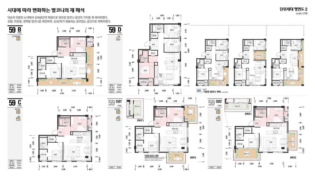 - 59㎡ 타입: 실용성을 강조한 설계